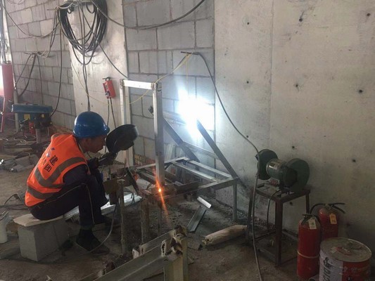 64 下图中,是某在建工程的地下室,现场检查时发现有工人在地下室有以下行为,请问下列哪些行为存在违规?