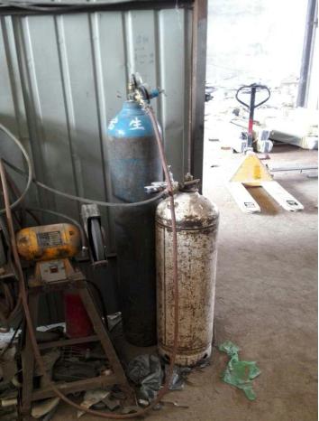 65 这是某工地的加工车间,请问该区域存在哪些安全隐患,建筑工地对气焊作业人员有何技术要求?