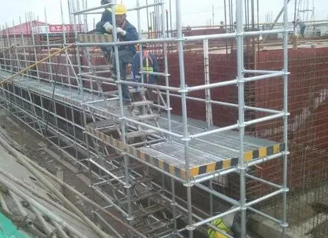38 ()支模架水平杆和斜杆采用杆端扣接头卡入连接盘,并用楔形插销进行连接。