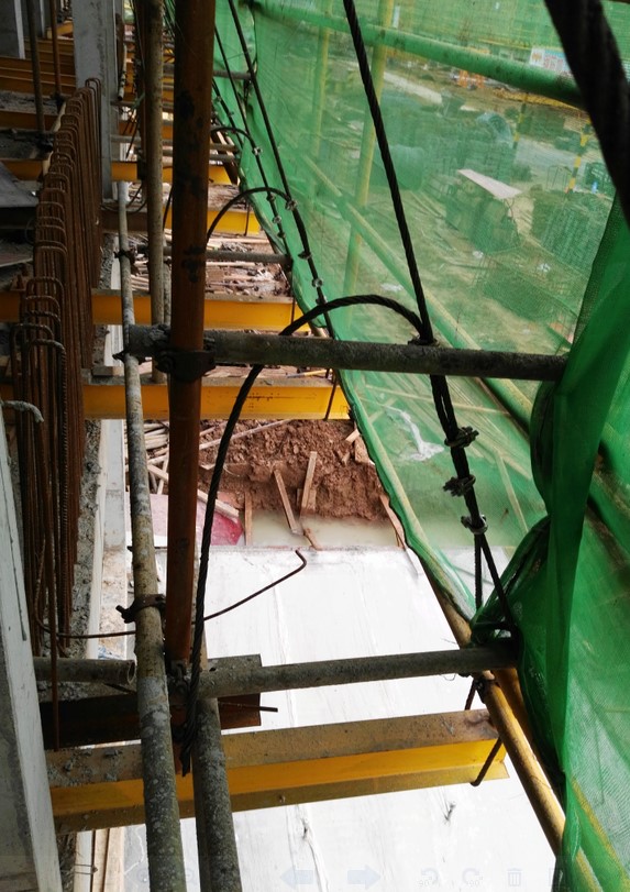 34 下图中是某工地搭设的悬挑脚手架,主要存在什么安全违规情况?()