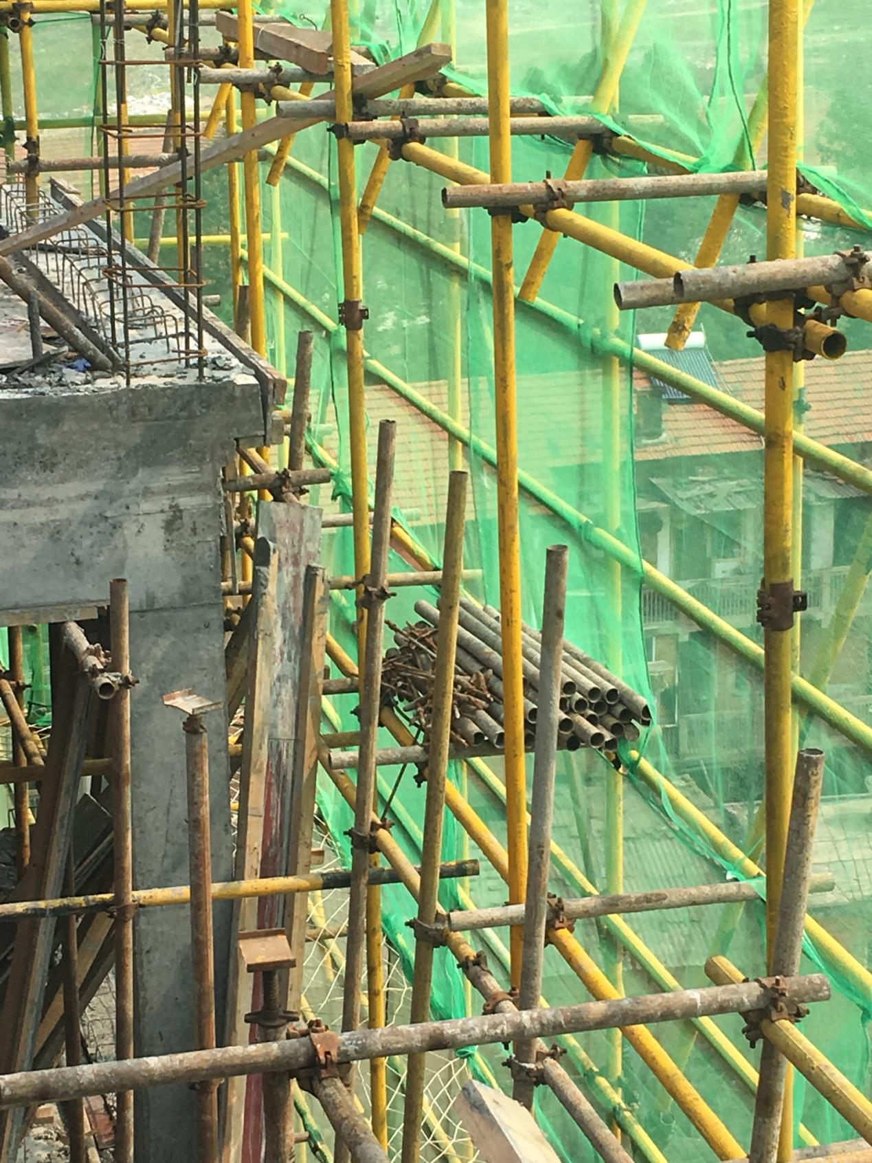 63 下图中悬挑脚手架存在什么安全隐患?()