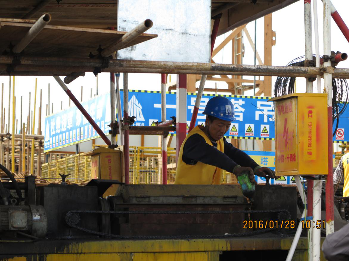 4 如图所示施工现场使用的钢筋调直切断机,下列叙述中正确的是()。