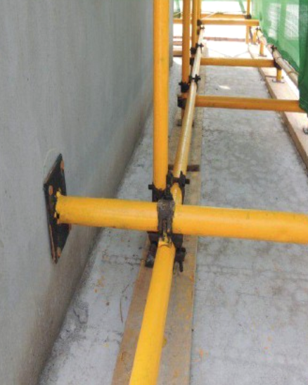 6 如图所示为某工地开口型脚手架,下列关于对脚手架开口端要求描述正确的是()。