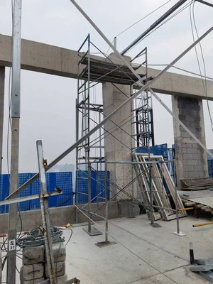 47 门洞桁架下的两侧立杆应设置为双管立杆,副立杆高度应()。