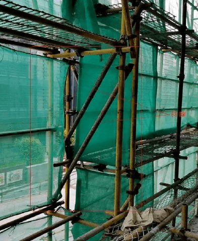 62 图中脚手架开口部位斜撑设置是否正确。()