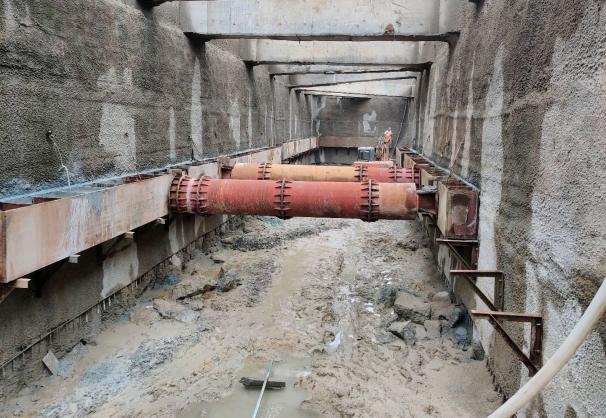 64 图示为暗挖隧道CD法施工断面,当前掌子面开挖循环进尺符合规定。()