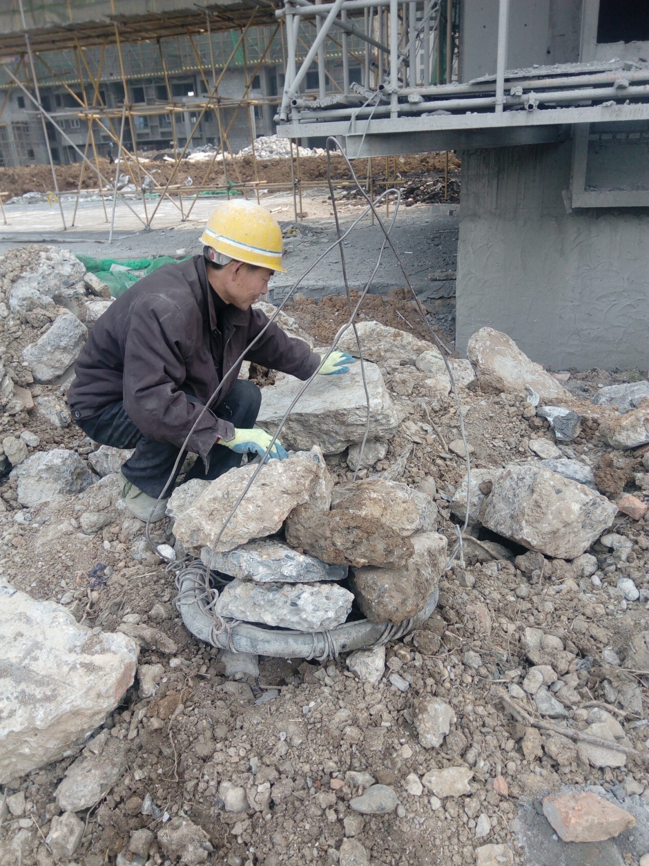 37 图中显示某工地正在用塔机吊运零星石块,存在的违规情况有()。