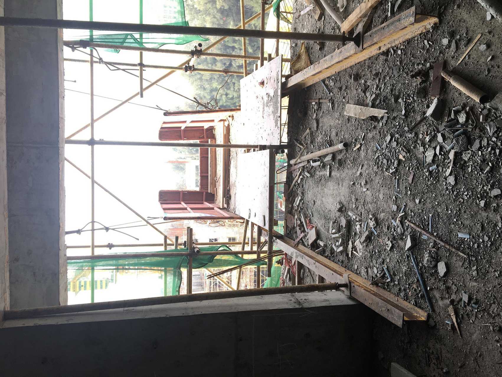 13 如图所示,卸料平台存在安全隐患,正确的处置方法是?()
