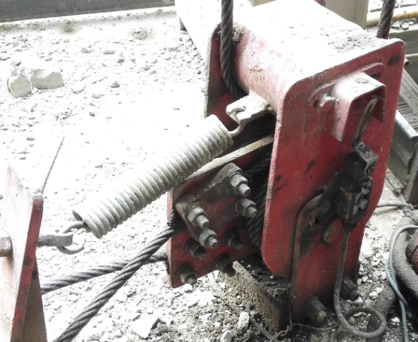 41 下图为带对重式施工升降机笼顶的防断绳装置,防断绳装置有()构件组成?