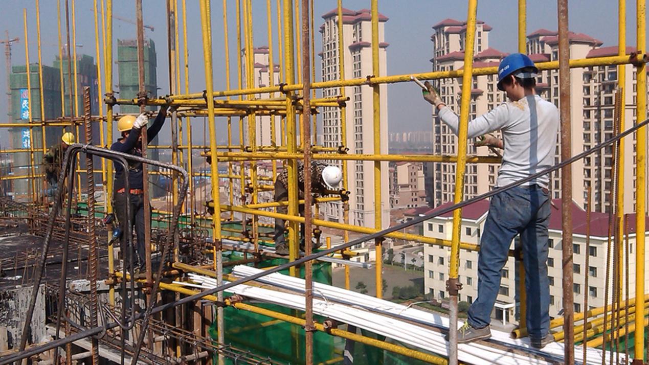 63 如图所示,外脚手架的施工,下文描述正确的是?()