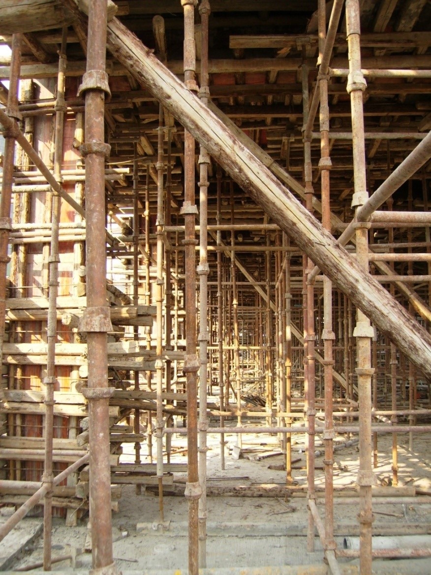 70 上图为模板支撑图片,该模板搭设是否正确。()