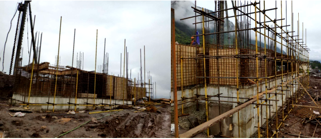 27 下图为某施工项目主体结构施工现场,检查时发现脚手架部分无水平.立面防护,连墙件未进行预埋等问题。则下列选项中关于下图隐患整改,符合要求的是:()