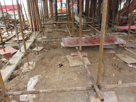58 图示是一建筑工地的模板支撑系统,图中存在的安全隐患主要有()。