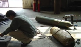 30 图示进行焊接作业,存在的隐患描述不正确的是()。