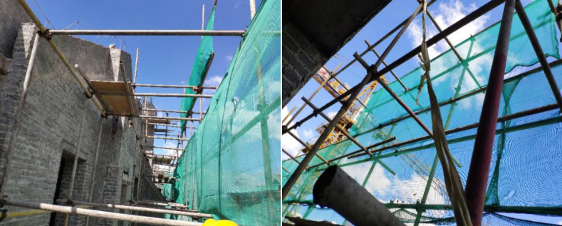 3 某在建工程搭设脚手架如下图,作业层下部的外架连续多层水平层间防护未设置,存在高处坠落事故隐患。针对该隐患,下列整改措施符合安全要求的是:()