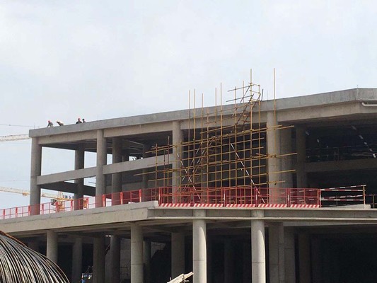 20 图示墩柱盖梁施工时存在的安全隐患是()。