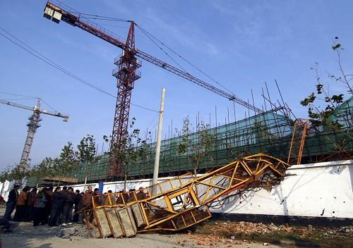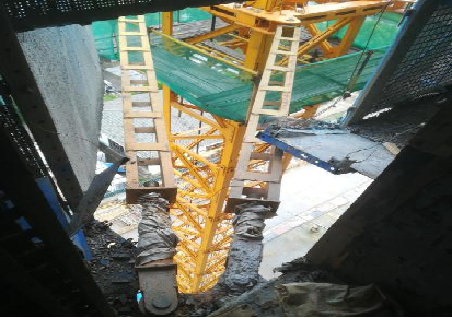 25 某塔吊发生(如图)钢丝绳断裂重物和吊钩一起坠落伤人事故,检查判断主钢丝绳脱槽未及时发现,导致钢丝绳负重磨断,该事故属于()失效引起。