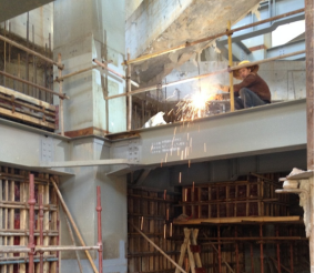54 图中悬挑钢梁U型螺栓固定构造,说法正确的是()