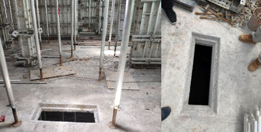 6 下图中,施工现场多个洞口防护缺失,存在高处坠落、物体打击事故隐患。关于洞口防护描述不正确的是:()