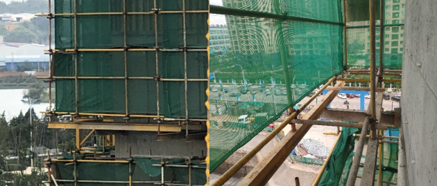 7 如下图示,在悬挑脚手架未拆除时,提前拆除密目安全立网,下列选项中说法正确的是:()