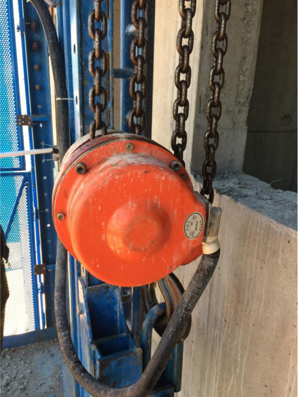 16 如图所示为附着式升降脚手架的提升设备,以下说法错误的是()。