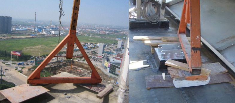 29 下图为某施工现场高处作业吊篮悬挂机构前支架设置情况,根据相关标准规范要求,下列说法正确的是:()