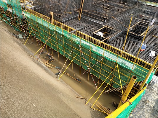 52 物料提升机基础周边()m范围内不得挖排水沟?