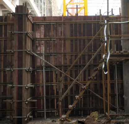 66 当建筑物高度大于24m、并采用木板搭设时,应搭设双层防护棚,两层防护棚的间距不应小于800mm。()