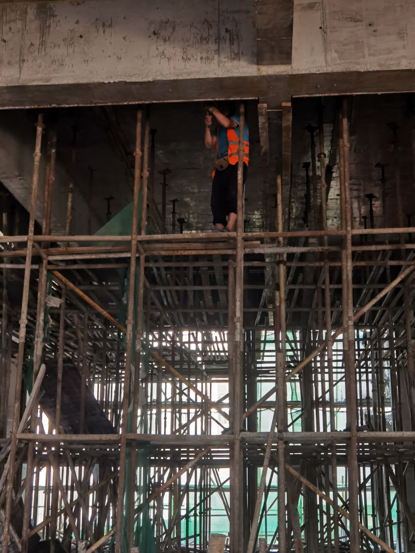 64 下图中悬挑脚手架存在什么安全隐患?()