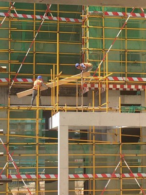 42 房建施工过程中,外墙脚手架可以与下列哪项进行连接固定()。