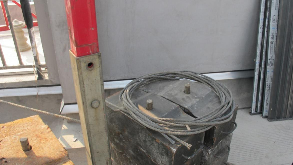 29 下图为某建筑施工现场高处作业吊篮悬挂机构设置情况(配重位置),按照相关标准规范要求,下列说法正确的是:()