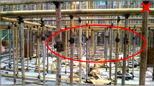 28 图中模板支撑体系采用扣件式钢管搭设,存在的问题是()。