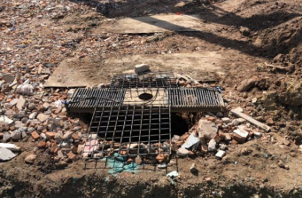 49 施工单位应该保证施工现场道路畅通,排水系统处于良好的使用状态;保持场容场貌的整洁,随时清理建筑垃圾。在车辆、行人通行的地方施工,应当设置沟井坎穴覆盖物和()。