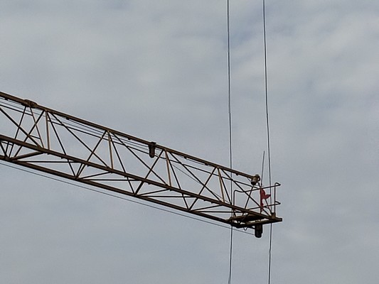 56 高位塔式起重机的最低位置的部件(或吊钩升至最高点或平衡重的最低部位)与低位塔式起重机中处于最高位置部件之间的垂直距离不得小于()m
