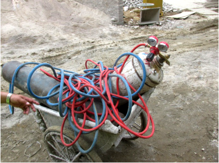 24 氧气瓶、乙炔瓶使用及存放时的间距应不小于()m。