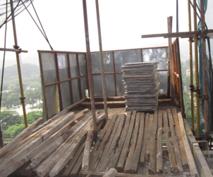 23 如图所示附着式升降脚手架,架体高度与支承跨度的乘积不应大于()㎡?
