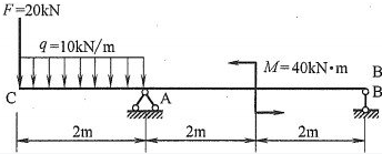 30 外伸梁受荷载如图所示,支座A的支反力为()。