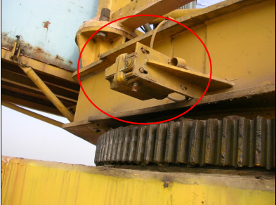 图中塔式起重机主要隐患是回转限位器小齿轮缺失