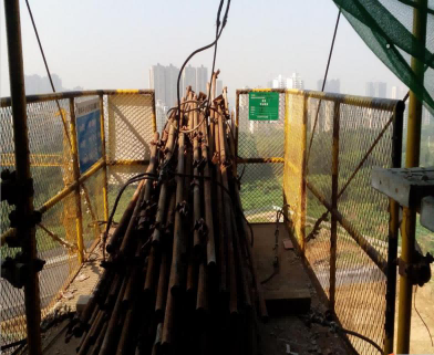 D. 高处作业吊篮内存在大量材料