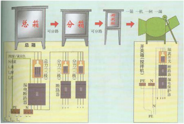 C. 停电操作顺序为:开关箱—分配电箱—总配电箱
