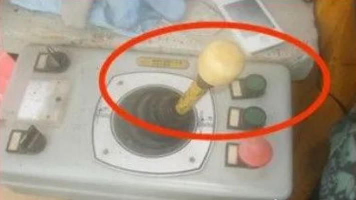 B. 塔机操作台按钮偏斜