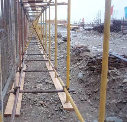 D. 图中脚手架立柱底部未设置垫板