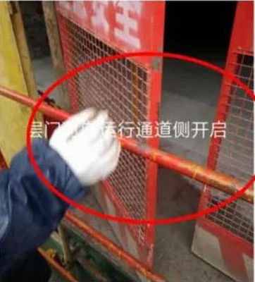 A. 层门向施工升降机运行通道侧开启并突出至吊笼运行通道