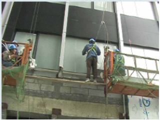 D. 针对上图请判断,高处作业吊篮操作人员应在地面进出悬吊平台,不得在空中攀缘窗口出入。()