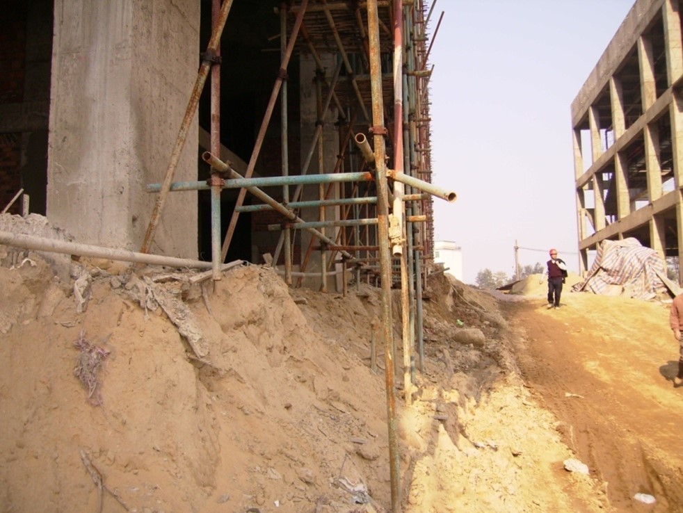 A. 脚手架立杆基础没有平整夯实,不符合规范要求