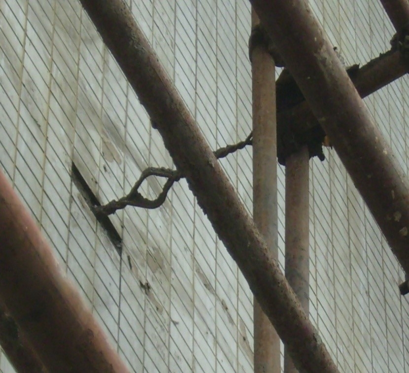 首页>试题列表>下面图片是施工现场连墙件的搭设情况,根据落地式外脚手架检查评分表说法正确的是()。