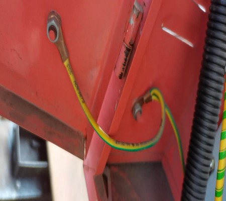 C. 电箱的金属箱门与金屋箱体采用编织软铜线做电气连接