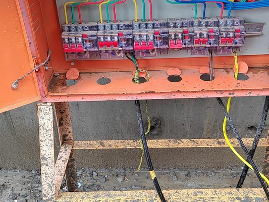 B. 电箱内漏电保护器额定动作电流参数不符合要求