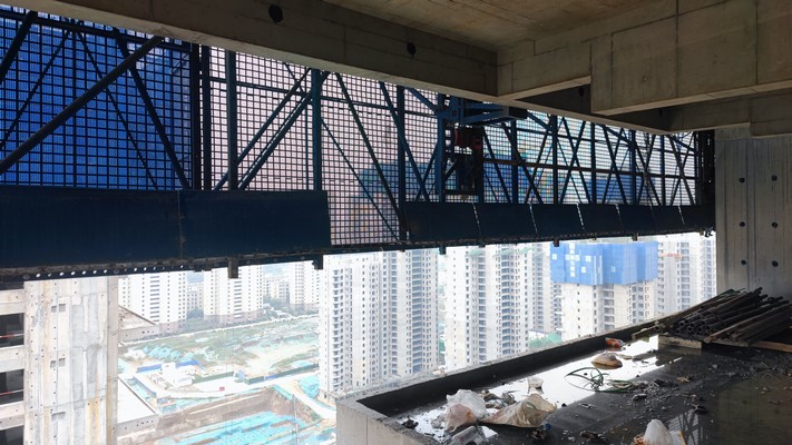 C. 附着式升降脚手架与楼层间未防护