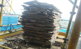 C. 卸料平台零碎材料未清理